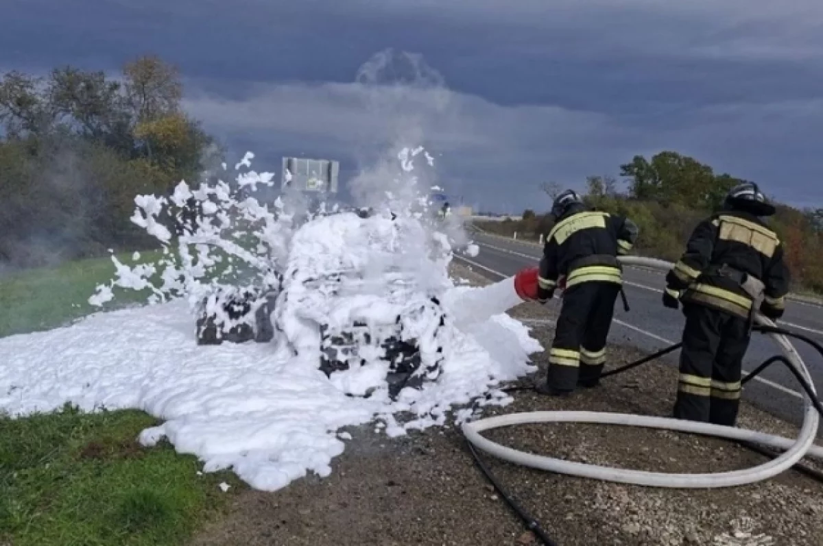На автодороге «Обход г. Майкопа» произошло возгорание легкового автомобиля. Пожар ликвидирован, погибших и травмированных нет.