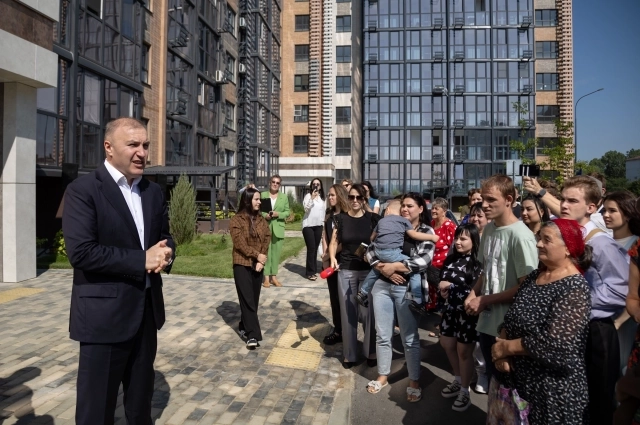 Мурат Кумпилов поздравил новосёлов с праздником и рассказал о предпринимаемых шагах по созданию необходимой социальной инфраструктуры рядом с новыми жилыми комплексами. Это касается строительства детсадов, школ, социальных учреждений, объектов здравоохранения, торговых точек и т.д.