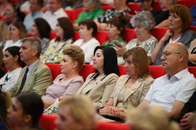 Далее Мурат Кумпилов вручил отличившимся учителям и наставникам государственные награды. За заслуги в области образования почетным званием «Заслуженный работник образования Республики Адыгея» отмечены: директор Республиканской естественно-математической школы Светлана Беджанова; учитель русского языка и литературы ОЦ № 11 Майкопского района Елена Белая; мастер производственного обучения Майкопского индустриального техникума Валентина Вахрушева; директор СШ № 27 Тахтамукайского района Марьяна Галамова; педагог дополнительного образования СШ № 3 г. Майкопа Людмила Григоренко; учитель русского языка и литературы СОШ № 1 Кошехабльского района Фатима Дамова; заведующая детсадом № 3 «Тополек» Теучежского района Нурет Жане; учитель биологии СОШ № 2 г. Адыгейска Нафсет Измайлова; директор гимназии № 1 Красногвардейского района Ирина Ляшен; воспитатель детского сада № 2 «Бэрэчэт» Шовгеновского района Нафисет Совбакова; учитель математики СОШ № 4 Гиагинского района Надежда Чусова.